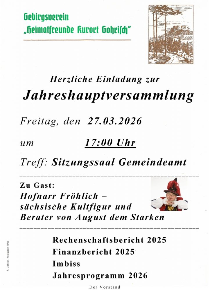 Jahreshauptversammlung des Gebirgsvereins „Heimatfreunde Kurort Gohrisch“ e.V.