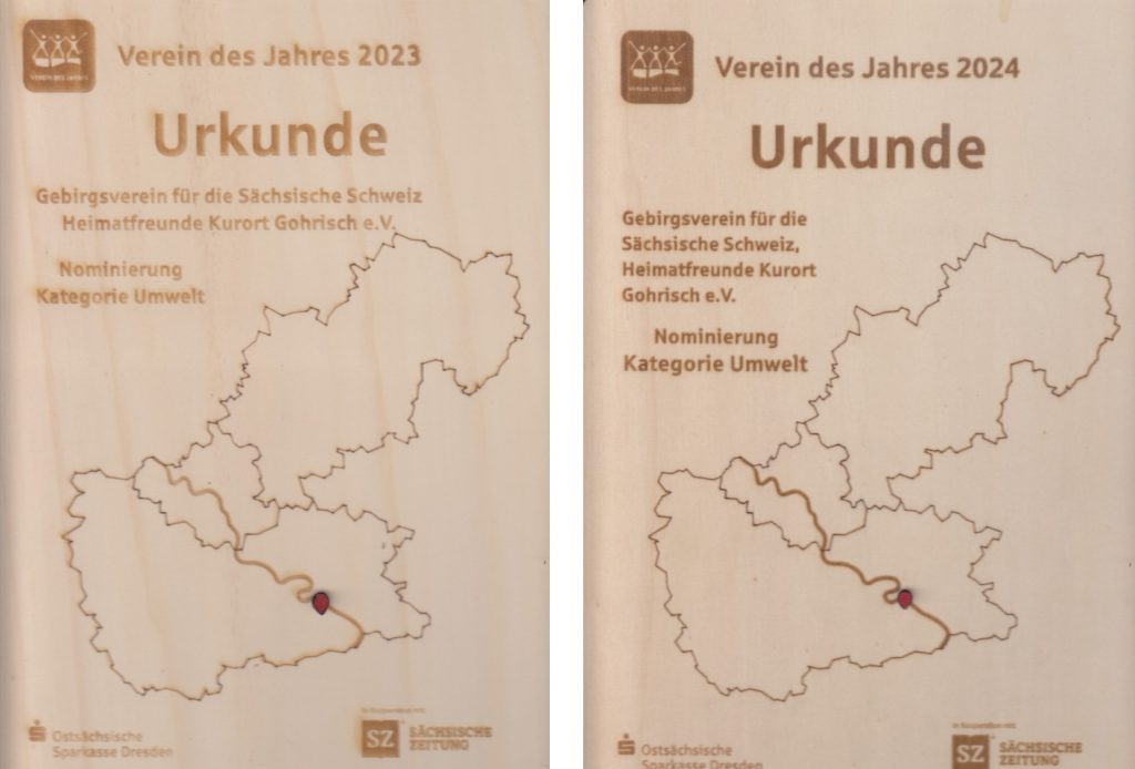 Der Ostsächsischen Sparkasse danken wir für die Förderung unserer Arbeit zum Aufbau und zur Pflege von Biotopen in Gohrisch! Für die Arbeit im Bereich Umweltschutz wurden wir in den Jahren 2023 und 2024 als Verein des Jahres in der Kategorie Umwelt nominiert. Auch dafür sind wir dankbar.